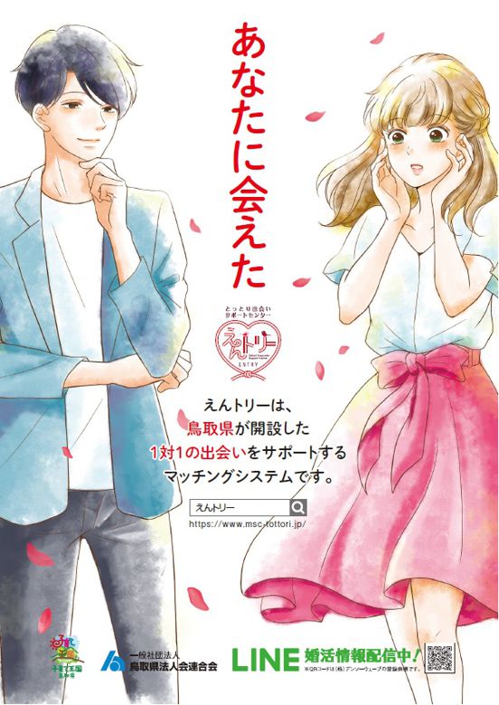 えんトリー(とっとり出会いサポートセンター)は、鳥取県が開設した1対1の出会いをサポートする会員制マッチングシステムです。