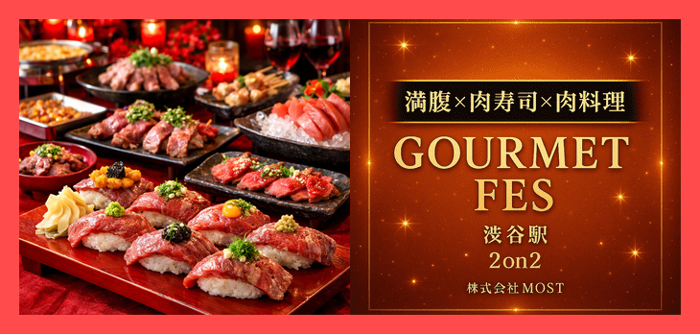 【着席・孤立ゼロ】#120分 #満腹FES 令和の横丁で出逢う、極上肉寿司と恋の祭典。【肉料理×飲み放題】【MOST】