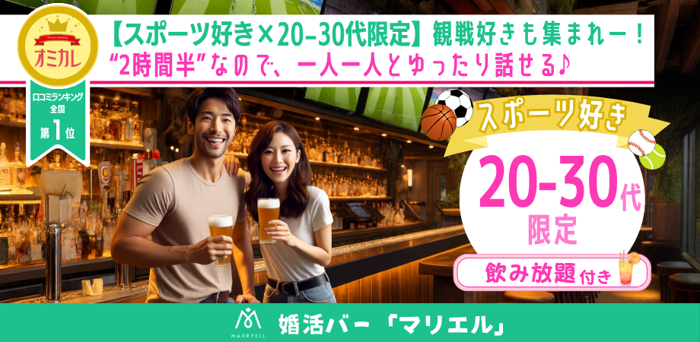 【趣味コン!】スポーツ好き♡20-30代限定企画@恵比寿 | 婚活バー「マリエル」※《5枠限定》1000円割引実施中♪