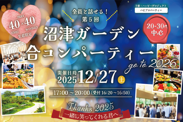 沼津市80人合コン/食事あり■1500円offは12/7まで■24-43歳■沼津ガーデン合コンパーティーgoto2026