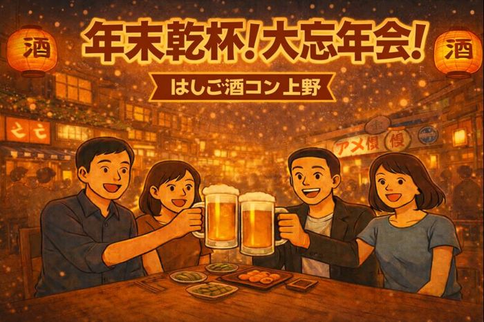 年末乾杯!大忘年会!はしご酒コン上野 ー 女性人気!1人参加限定!20代後半30代限定!上野ではしご酒しよう!