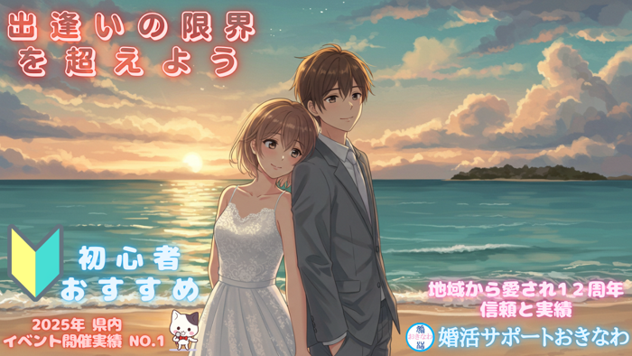 地域に特化した大中小の様な婚活パーティーを開催しおります。ボランティアで培ってきた信頼と実績、奉仕の精神を活かし、価格以上の価値をお客様にご提供することで、お客様一人一人にご満足して頂けるサービスに日取り組んでいます。沖縄初となるライブ婚活パーティーをはじめ、ビーチ婚活パーティーや職業限定120人婚活パーティーなどなど、ワクワク感ドキドキ感満載のイベントをこれまでに開催して参りました。今後も更なる企画イベントをご用意し、出逢いの場の付加価値を高めていくことで、交際や結婚にも繋がるような良質な出逢い作りに努めて参ります。