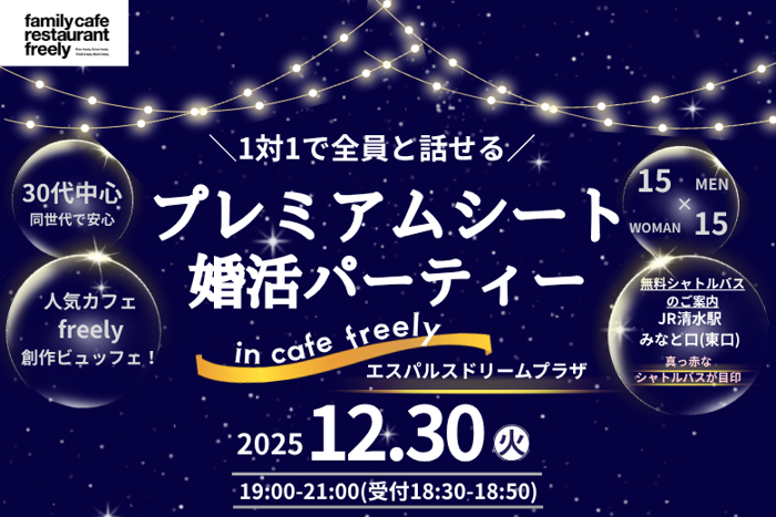 浜松市/食事あり■1500円offは12/7まで■25-43歳限定/プレミアムシート婚活パーティーin浜松