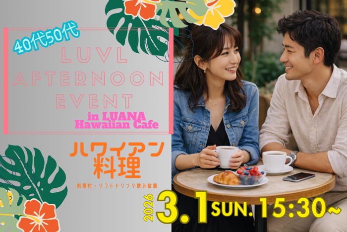 LUVL(ラヴル)は、兵庫県姫路市を拠点に、大人が自然体でつながる地域交流イベントを企画運営しています。今回は、テラッソ姫路内LUANAHawaiianCafeにて、カフェのようにリラックスした空間で、自然な会話を楽しめる少人数イベントを開催します。こんな方におすすめ恋愛や婚活に少し疲れてしまった方自然体で出会いたい方同年代の方と気軽に話したい方日時2026年3月1日(日)15:3016:45会場LUANAHawaiianCafe(テラッソ姫路4F)対象年齢40歳55歳くらいまで最少催行人数各2名初参加お一人様も安心してご参加ください。最少催行人数に満...