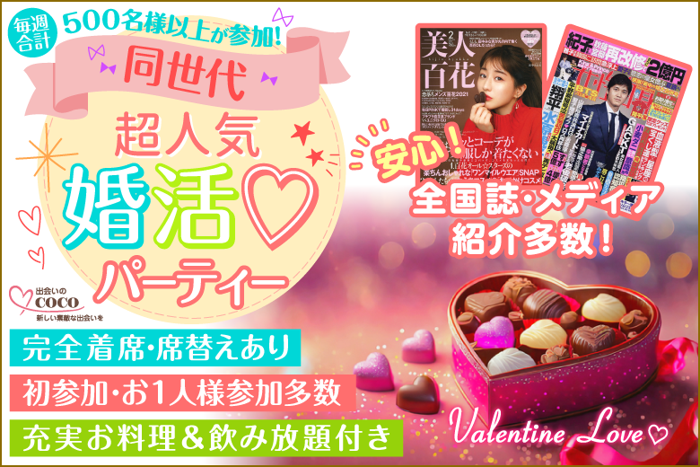 【♪祝・19週連続50名様満席実績♪】全国誌紹介多数の人気街コン☆【完全着席】【特製コース・飲み放題】【バレンタイン特別企画】