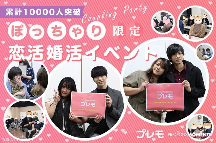 本イベントは再婚希望の方シングルマザーの方外国人の方も安心してご参加いただけます。過去に公務員警察官消防士自衛隊の男性の方のご参加も多数累計参加者10000人突破カップル率487ぽっちゃりみけぽちゃ女性とぽちゃ好き男性限定パーティーCLASSY美人百花等の女性雑誌で特集された人気パーティーPoint11:1で全員の異性とおしゃべりできて、カップリングや連絡先の交換ができちゃう()Point2プロフィールカードがあるから人見知りさんやコミュ症さんにも心強い()Point3初参加、一人参加の方が8割以上ラフな格好で気軽に参加できるイベ...