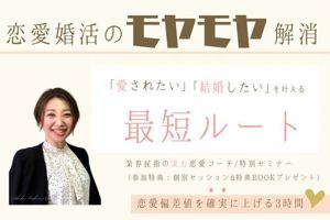 自分に自信がなくて恋愛が上手く行かない、デートが次に繋がらない、将来結婚できないかもしれないというお悩みを抱えている男性へ最短3月後には彼女ができ、1年後には結婚できる自分になるために、恋愛、婚活が上手く行く方法をお伝えします。恋愛、婚活支援業界で26年間出会いの場の提供と、お悩み相談に取り組んでき...