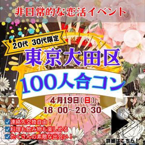 4月19日(日)12:00〜 【その他区内】 【国家公務員 or 超大手企業】【平均30名】 1vs1着席なので異性全員と会話可能♪