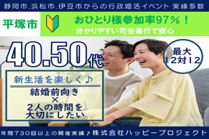 10月5日(日)11:00〜12:30 【平塚市】 《平塚市》☆開催!男性先行中☆40代50代(新生活を楽しく♪結婚前向き×2人の時間を大切にしたい)