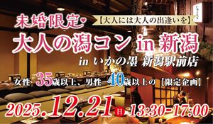 12月21日(日)13:00〜14:30 【長岡市】 【女性無料ご招待/長岡市】個室Style│誠実な方限定の婚活パーティー【お一人での参加率98%】