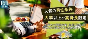 人気の企画女性にとっても人気なアツーイ企画男性は、大学卒業以上or身長170cm以上どちらか当てはまるかた限定(グループ参加の場合は、1名様が該当していれば参加可能です。)女の子のこんな人と出会いたいを叶える企画もちろん女性にとっても人気なので、男性もたくさんのかたと出会えますよ普段の生活だとなかなか出会...