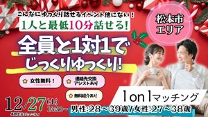 12月27日(土)13:30〜15:00 【松本市】 (松本エリア)【男性28~39歳、女性27~38歳】ヒナ企画★1on1マッチング|12月27日(土)13時30分~