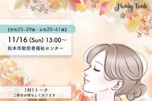 11月16日(日)11:00〜12:30 【佐久市】 【当月1回のみ/佐久市】希少な開催でいつもと違う出会いを!この日にぜひお集まりください!!【お一人での参加率98%】