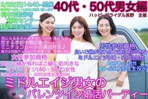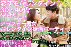 2月22日(日)10:00〜11:45 【松本市】 【松本市会場/松本市勤労者福祉センター】上限37歳迄《アラサー男女編♡20代~35才男女主役》バレンタイン婚活パーティー