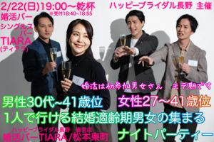 2月22日(日)15:00〜16:30 【長野市】 【女性無料ご招待/長野市】個室Style│誠実な方限定の婚活パーティー【お一人での参加率98%】