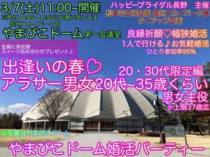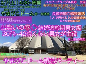 佐久市会場佐久市会場年間開催6回目安2月に一度のチャンス佐久市市民創練センター大型無料駐車場完備県立武道館の斜向かいの清潔感ある会館ですミドル編40-50代編婚活パーティー参加者女性にお悩みアンケートを取って多かったご意見がマッチングしても消極的な男性多い。。女性をリード上手にデートに誘って欲しい。。ヨ...