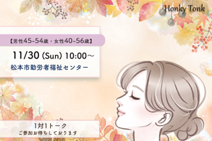 11月29日(土)19:00〜21:00 【長野市】 大人の恋活長野【料理☆飲放題付・連絡先交換あり・完全着席】1名多数・参加歓迎