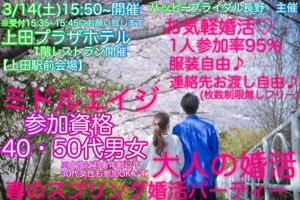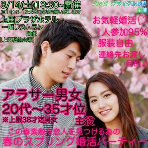 3月8日(日)11:00〜12:30 【長野市】 【女性無料ご招待/長野市】個室Style│誠実な方限定の婚活パーティー【お一人での参加率98%】