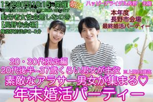 12月28日(日)10:15〜12:00 【長野市】 本年度長野市会場最終パーティー《アラサー男女20代後半~37才位主役》素敵なアラサー男女が集まる♡長野市年末婚活パーティー