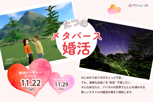 パートナーシップ診断で自分を知り、メタバースのアバターで性格や価値観思考など内面から理解し合うことが出来ます。カップルになった後、アバターデートを経て、リアルデートの日程調整までデジタル仲人がサポートします。注意事項自治体主催のメタバース婚活となります。オミカレでご応募いただいた後、別途ご案内す...
