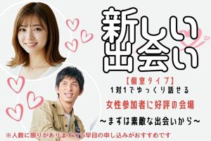 こちらのパーティーは結婚前向きな男女にお集まりいただきます。落ち着いた空間で全員の方とじっくりお話しすることができるため、カップル成立後のミスマッチも少なく安心してお付き合いができます。一人一人をしっかり知りたい心から好きになれた人と結婚したいそんな方にオススメの企画です。男性は仕事も趣味も充実...