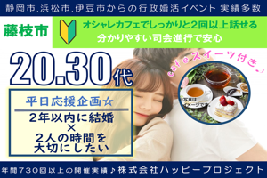 10月22日(水)19:00〜20:30 【藤枝市】 藤枝市/caféスイーツ付き/20代30代(平日応援企画☆2年以内に結婚×2人の時間を大切にしたい)
