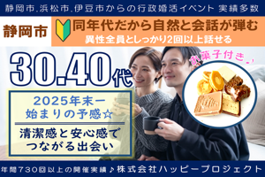 12月29日(月)13:30〜15:00 【浜松市】 浜松市■バランス良好■33-43歳中心(Thanks2025☆丁度いい年の差×1.5年以内に結婚)