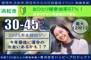 12月30日(火)11:00〜12:30 【静岡市】 静岡市/お菓子付き■超早割は12/25まで■40代中心(Thanks2025☆丁度いい年の差×1年以内に結婚)