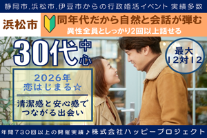 1月4日(日)15:00〜16:30 【浜松市】 【女性無料ご招待/浜松市】個室Style│誠実な方限定の婚活パーティー【お一人での参加率98%】
