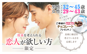 3月20日(金)15:30〜17:00 【浜松市】 【駅近&提携駐車場あり&女性チョコプレゼント♪】【男性28~41歳・女性27~40歳】【30代中心編】同世代婚活パーティーin浜松