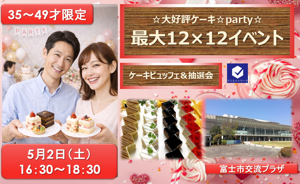 5月2日(土)18:55〜20:55 【浜松市】 なんと!!申込〆切間近!!男性・女性残り僅か!!Bigチャンス!!【駐車場完備♪/雰囲気わかる動画紹介中】週末プレミアム街コン