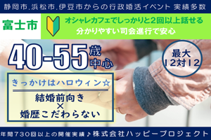 10月25日(土)15:00〜16:30 【富士市】 〈富士市〉■開催!12名目前/女性先行中■40-55歳(きっかけはハロウィン☆結婚前向き×婚歴こだわらない)