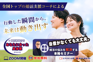 3月15日(日)15:15〜16:45 【津市】 【早割3/8迄】30代中心理想の旦那 の条件を満たす男性30~39歳 女性28~39歳 駐車場完備