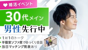 1人参加大歓迎人気の婚活パーティー街コンプロフィール入力マッチングまで、スマホ完結で楽参加全員にチャンスがある1対1トーク1人参加率は951人参加大歓迎昨年度約14万人の動員実績パーティー専用個室会場で開催完全着席形式スタッフによる席替案内を徹底イベント後も気になる異性に連絡先が送れる(アフターアプローチ...