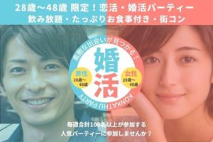パーティー専用会場で開催全員にチャンスがある1対1トーク1人参加率は951人参加大歓迎昨年度約14万人の動員実績パーティー専用個室会場で開催完全着席形式スタッフによる席替案内を徹底イベント後も気になる異性に連絡先が送れる(アフターアプローチ機能)スタッフの進行で全員の方とお話できるので、フリータイムで放...