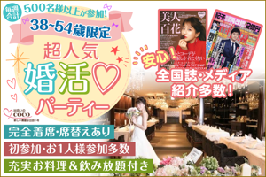 30代40代前半、結婚を前向きに考えている男女の出逢い恋愛も結婚も、安心感と頼れるパートナーが欲しいそんな大人の男女に大人気同じ思いを持った方同士の出逢いだからマッチングにも期待できます。また、1人参加が多く周りを気にせずじっくり会話を楽しめるのもこの企画の魅力です気になる方がいたら積極的にアプローチ...