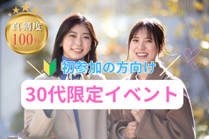 30代限定同世代大集合恋がしたい方限定の婚活イベントよくあるこれまでの出会いパターン結婚の意思がない相手とダラダラ関係が続いてしまう遊び目的の人が多く真剣な話ができない出会っても価値観が合わず、時間だけが過ぎていくこのイベントで目指せる出会い同じように結婚を1年以内にと考えている人と出会える最初か...