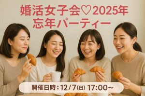 婚活女性の為の女子会婚活女子会2025年忘年パーティー有名店の高級クロワッサンを味わいながら、ざっくばらんに語り合う女子会を開催内容2025年の婚活を振り返る本音トーク新年に向けた婚活の目標設定結婚相談所で実際に活動中の女性会員も参加リアルな体験談が聞けちゃう一人で悩まず、誰かに話すことで心が軽くなる笑...