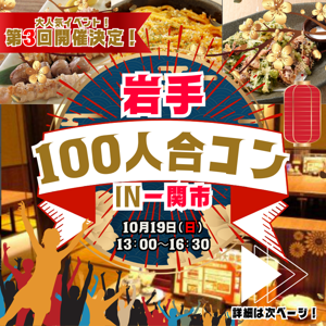 10月19日(日)13:00〜16:30 【一関市】 【大好評につき第3回!】岩手100人合コンin一関市!