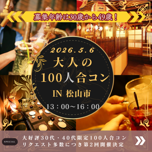 5月4日(月)16:00〜 【松山市】 《男性9名様満席!!残り女性2枠のみ★★》恋愛結婚がしたい☆20代後半女性のための婚活☆